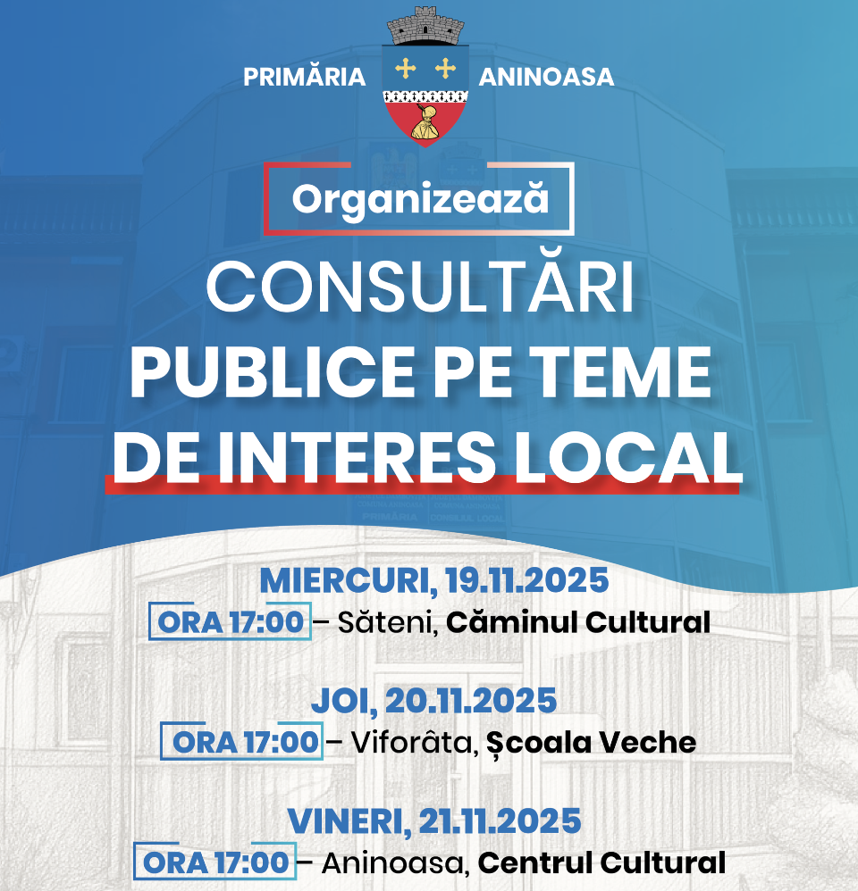 Potrivit edilului, aceste consultări publice sunt esențiale pentru ca vocea fiecărui locuitor să fie auzită. „Vrem o administrație deschisă și o comunitate în care dialogul este normalitate, nu excepție”, a subliniat primarul, invitând cetățenii să participe activ și să își exprime punctele de vedere.