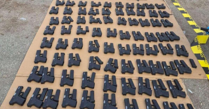 Polițiștii de frontieră au făcut, vineri, 13 martie, o captură-record de arme și tutun de contrabandă în zona punctului de frontieră Calafat, unde au descoperit, într-un autocamion înmatriculat în Turcia peste 100 de pistoale, încărcătoare şi 60.000 de ţigarete, potrivit Agerpres. La verificarea compartimentului de marfă, polițiștii de frontieră au descoperit că sigiliul fusese rupt și relipit, iar în interior se aflau mai multe cutii cu țigarete cu timbru turcesc. Continuând controlul, au fost găsite și 106 pistoale, însoțite de 131 de încărcătoare fără muniție. Mai departe, controlul a scos la iveală 106 pistoale și 131 de încărcătoare fără muniție, toate fără documente de proveniență.„Poliţiştii de frontieră din cadrul Inspectoratului Teritorial al Poliţiei de Frontieră Giurgiu – Sectorul Poliţiei de Frontieră Calafat, împreună cu poliţişti de frontieră bulgari şi lucrători ai Direcţiei Regionale Vamale Craiova – Serviciul Echipe Mobile Calafat, au descoperit, în urma controlului asupra unui autocamion, 106 pistoale, 131 de încărcătoare fără muniţie şi 60.000 de ţigarete pentru care şoferul nu a putut prezenta documente de provenienţă. Controlul a avut loc la data de 13 martie, pe DN 56, asupra unui ansamblu rutier înmatriculat în Turcia, condus de un cetăţean turc, în vârstă de 38 de ani, care circula pe ruta Turcia – Germania”, a transmis, sâmbătă, Poliția de Frontieră.Valoarea estimată a tigaretelor descoperite se ridică la aproximativ 90.000 de lei. Bunurile au fost confiscate pentru continuarea cercetărilor, iar camionul a fost indisponibilizat. Editor : A.P.