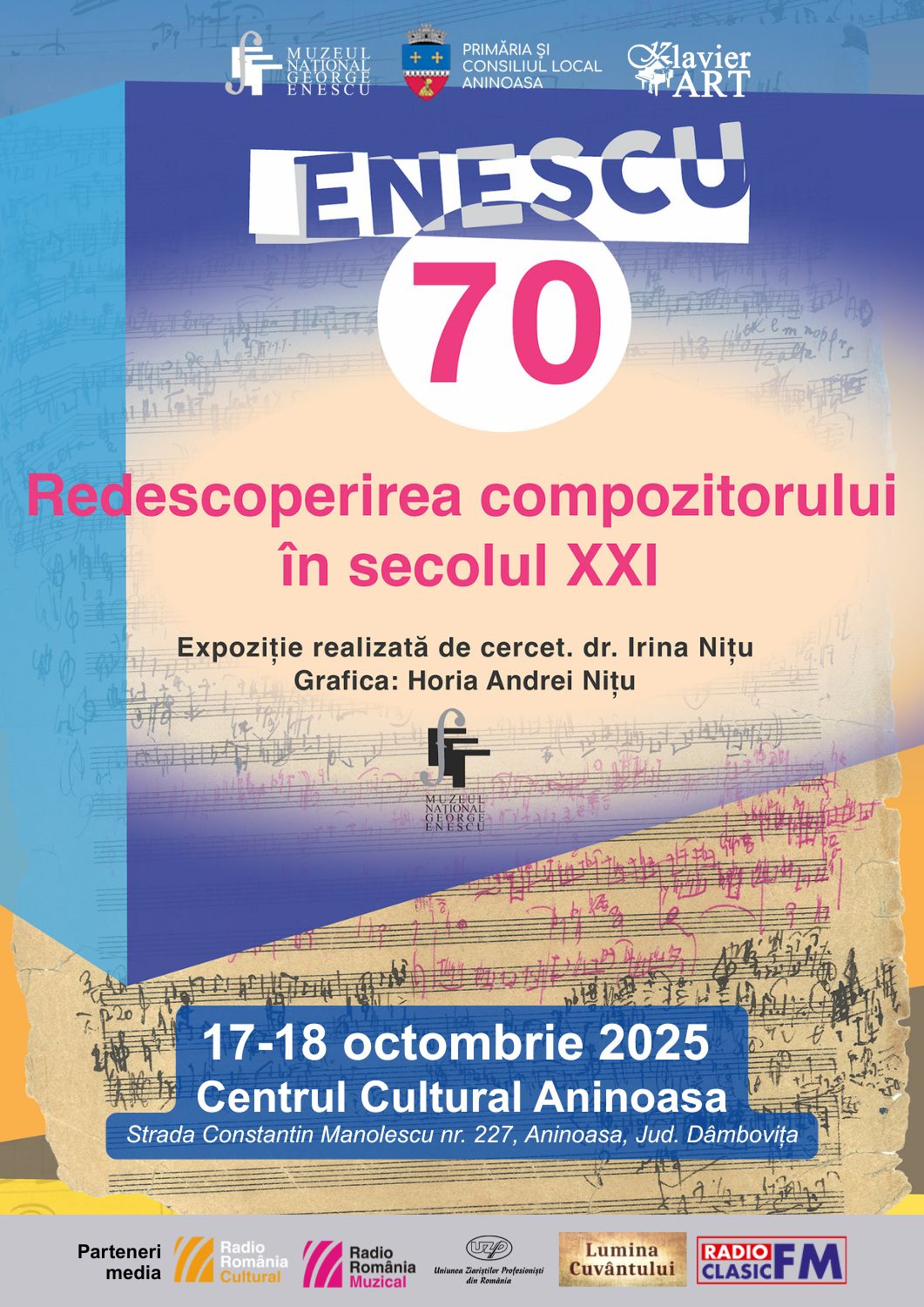 Muzeul Național “George Enescu” și Asociația KlavierArt aduc în premieră la Aninoasa Classic Festival, ediția a II-a, o expoziție foto-documentară impresionantă intitulată „Enescu 70 – Redescoperirea compozitorului în secolul XXI”. Evenimentul are loc în perioada 17-18 octombrie 2025, la Centrul Cultural Aninoasa, sub egida Primăriei Comunei Aninoasa, al cărei primar, Vlăduț Niculae, este și managerul executiv al festivalului.