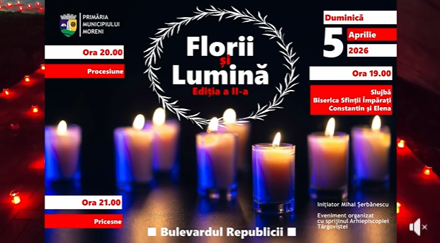 Primarul orașului Moreni, Gabriel Purcaru, a anunțat organizarea celei de-a doua ediții a evenimentului „Florii și Lumină”, programat în duminica Floriilor, pe 5 aprilie 2026, începând cu ora 19:00.