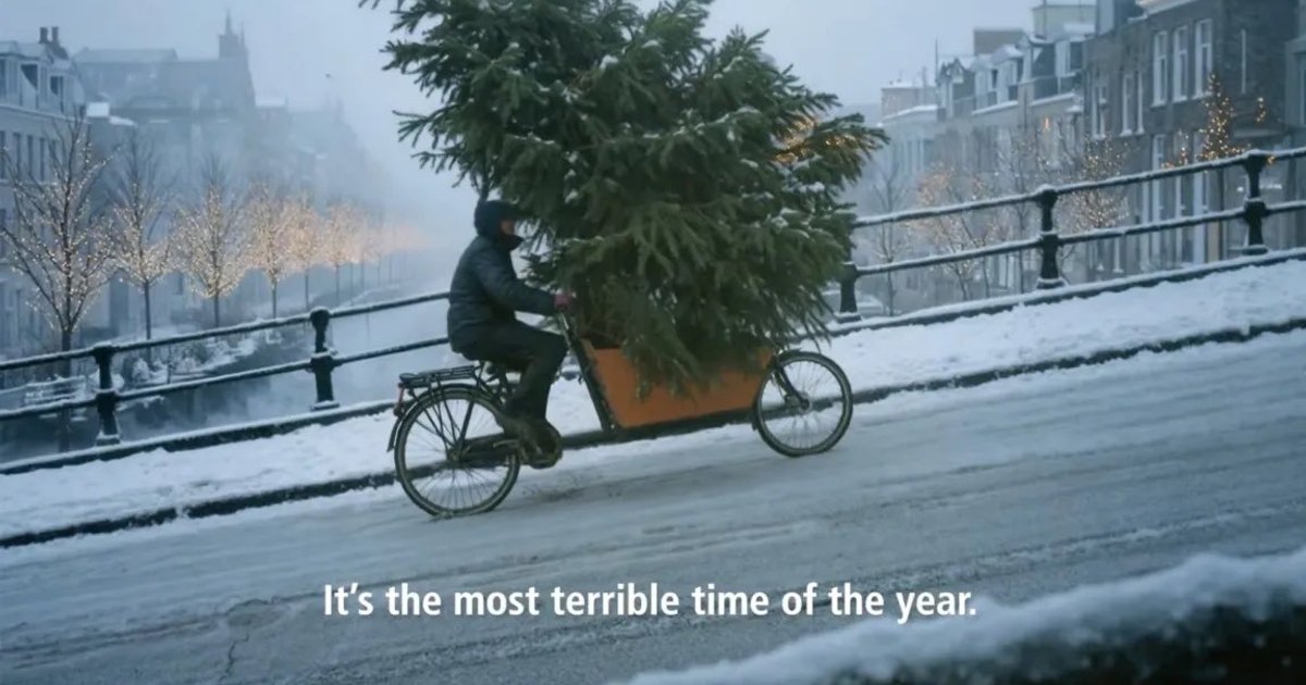 În clipul de 45 de secunde, privitorii sunt purtați printr-o succesiune de situații nefericite, populate de personaje generate de AI: mese familiale dezorganizate, cumpărături eșuate, prăjituri arse, brad decorat stângaci — toate construite pe o atmosferă intenționat apăsătoare.