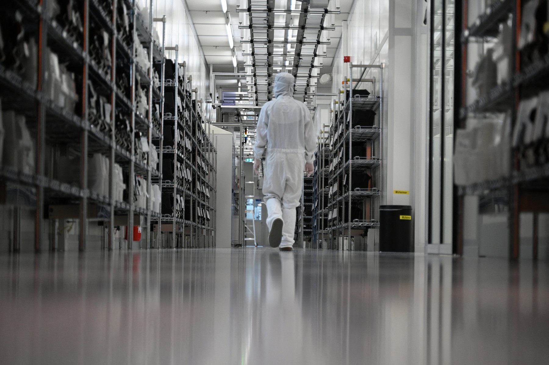 Un angajat al companiei Nexperia trece prin camerele curate ale producătorului de semiconductori (imagine ilustrativă), FOTO: David Hammersen / AFP / Profimedia Images