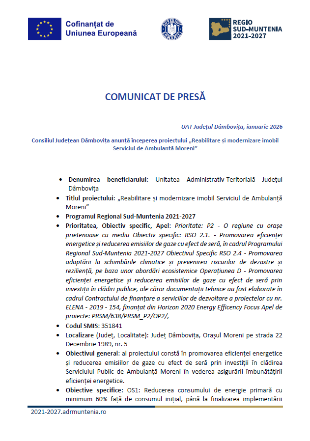REABILITARE ȘI MODERNIZARE IMOBIL SERVICIUL DE AMBULANȚĂ MORENI